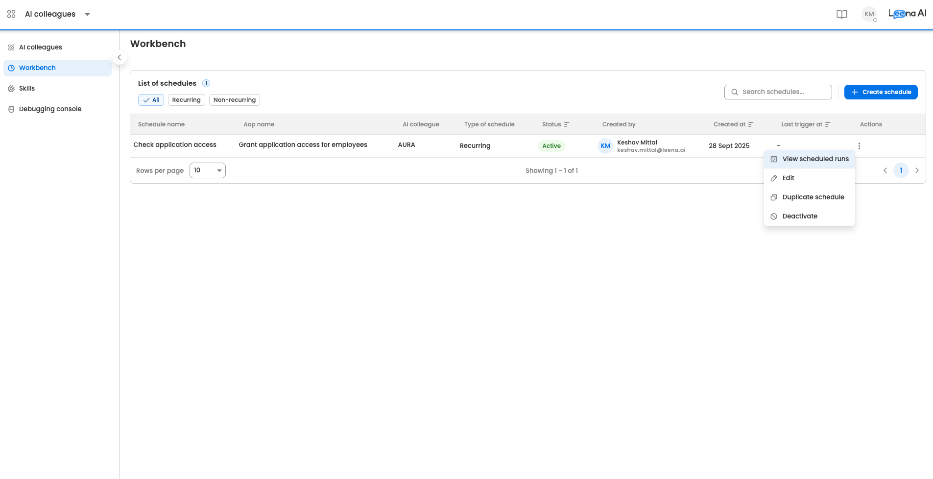 - Access: Click "View scheduled runs" from the Actions dropdown