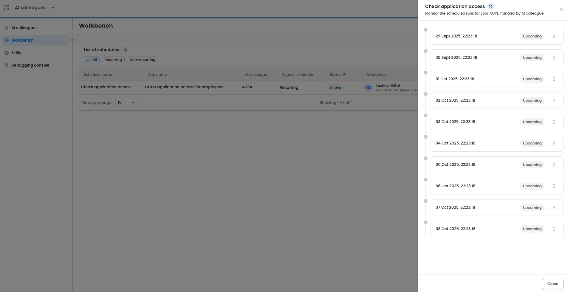 List of 10 upcoming schedules > with option against each scheduled run to cancel