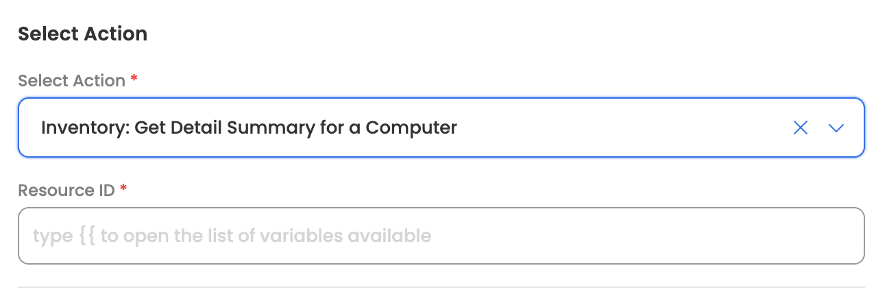 | Resource ID | Computer ID. This would depend on how the unique IDs of computers are mapped in a client's instance. | String |