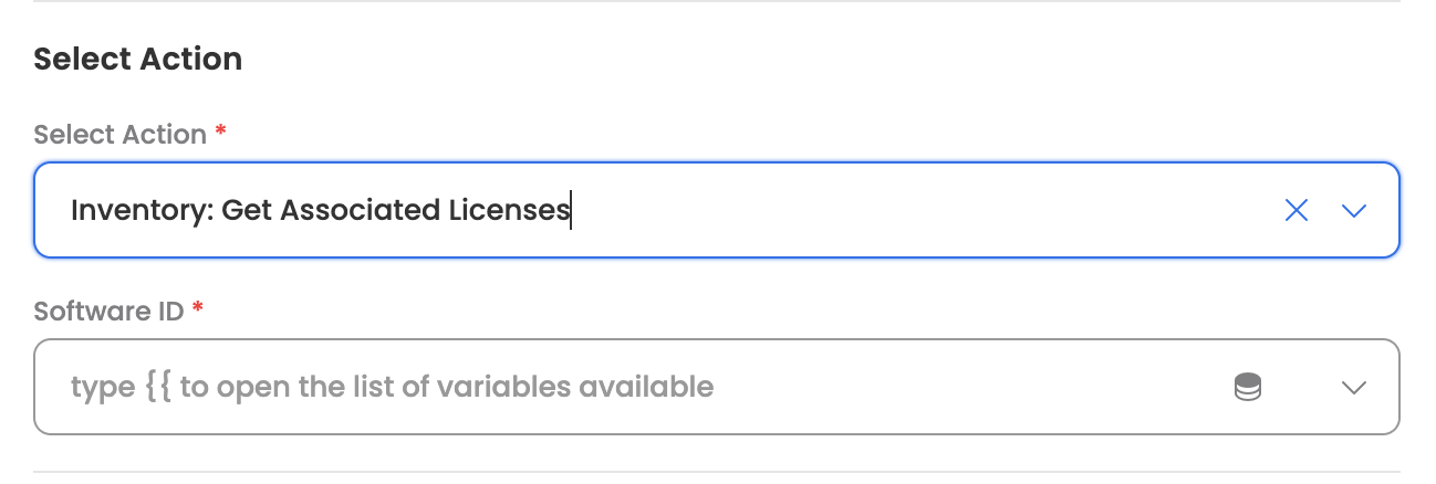 Retrieves licenses associated with specific software. This action can be used to fetch the available license and types for the software.