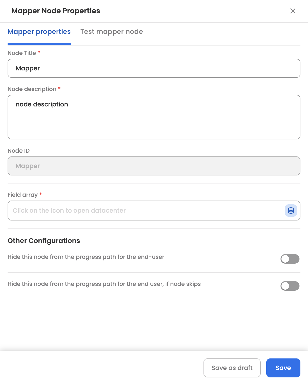 Mapper Node is designed to help you effortlessly transform an existing input field array into a well-defined output structure—be it an object or an array of objects.