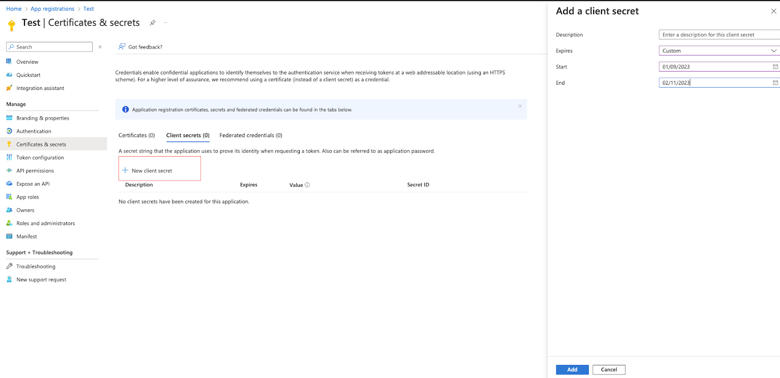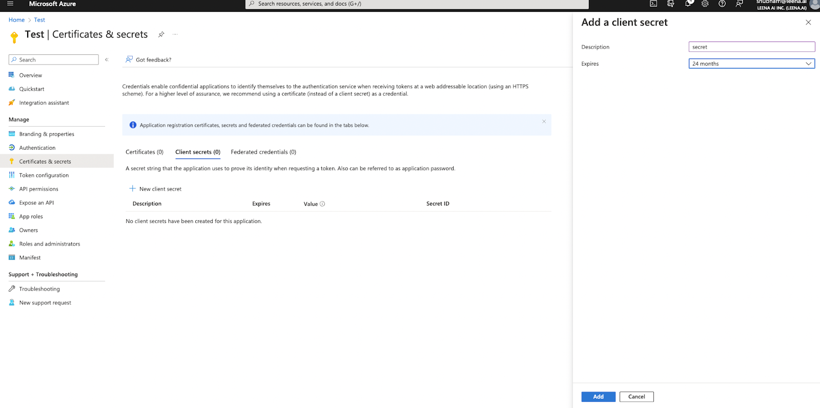 - Client ID: The Application (client) ID from your Azure AD app registration from step 4