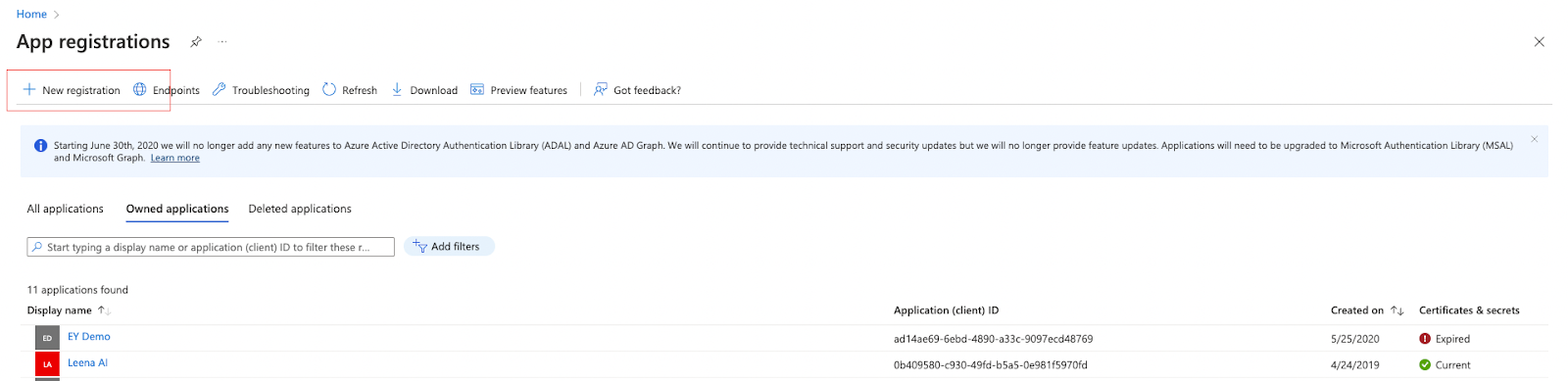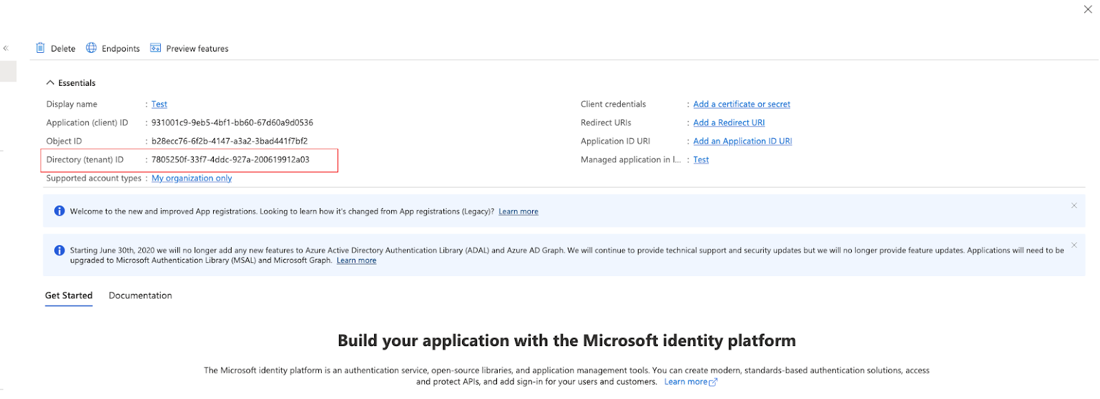 - Tenant ID: The Azure AD tenant ID (Directory ID) from step 4 of app registration