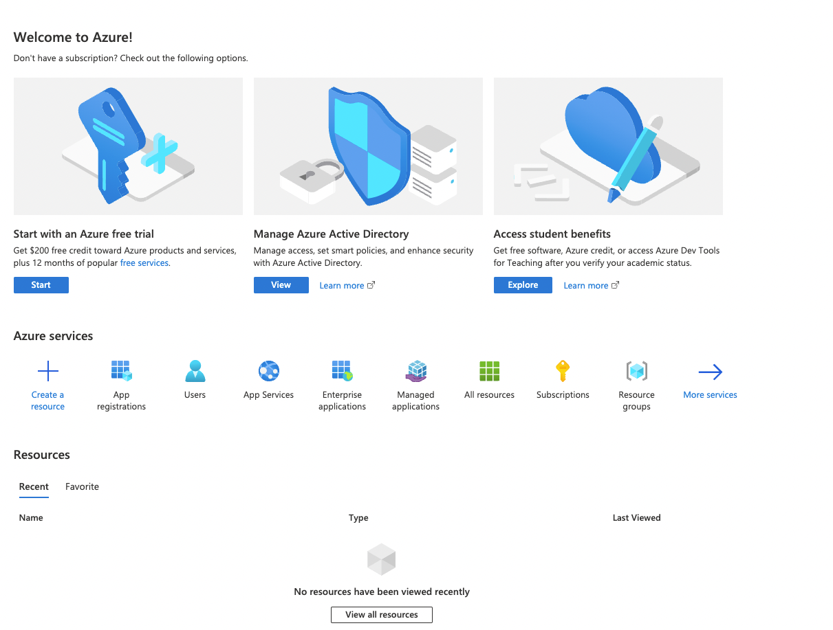 Navigate to Azure Portal at https://portal.azure.com/#home