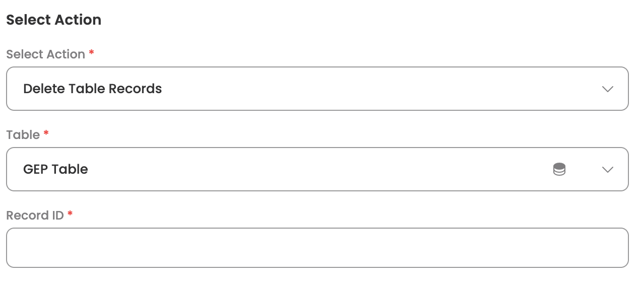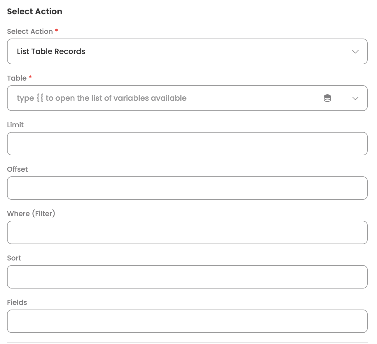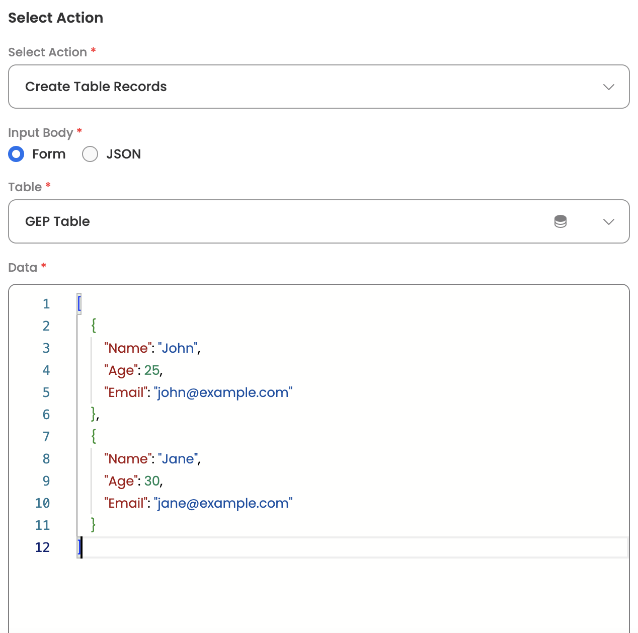 | Table | Select a table from dropdown. The tables listed would be the ones for which the token has access |
