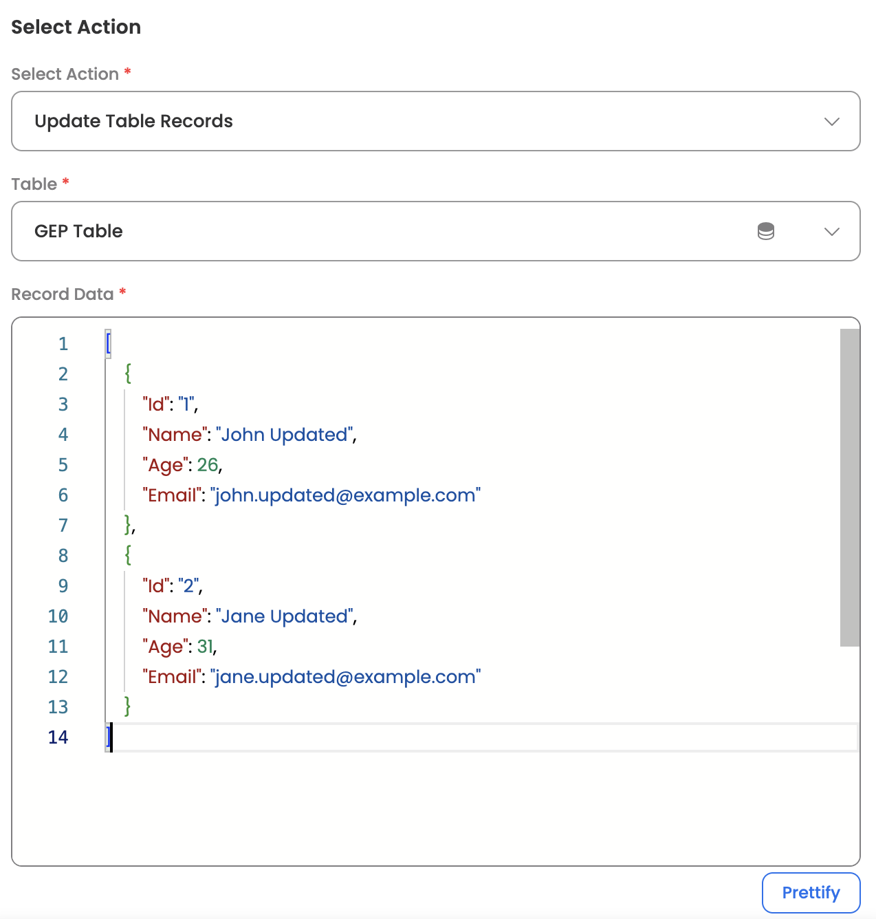 Updates existing records in a specified NocoDB table. The Agent can leverage the skill (workflow) to modify existing records in a table once the user provides the updated record details. Here are some common use cases: