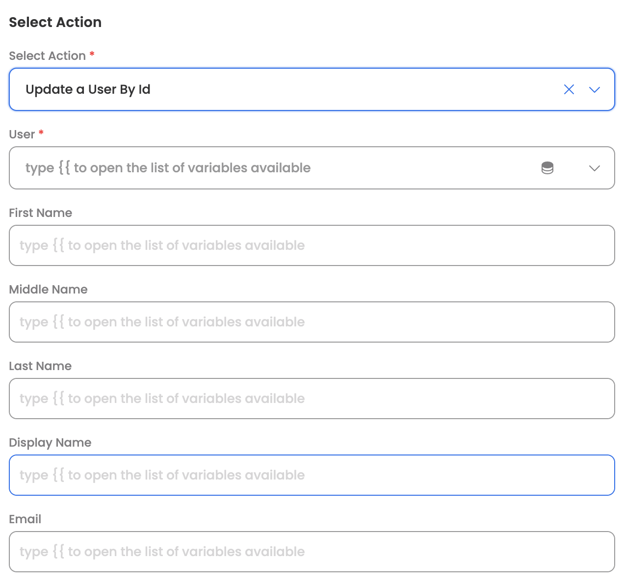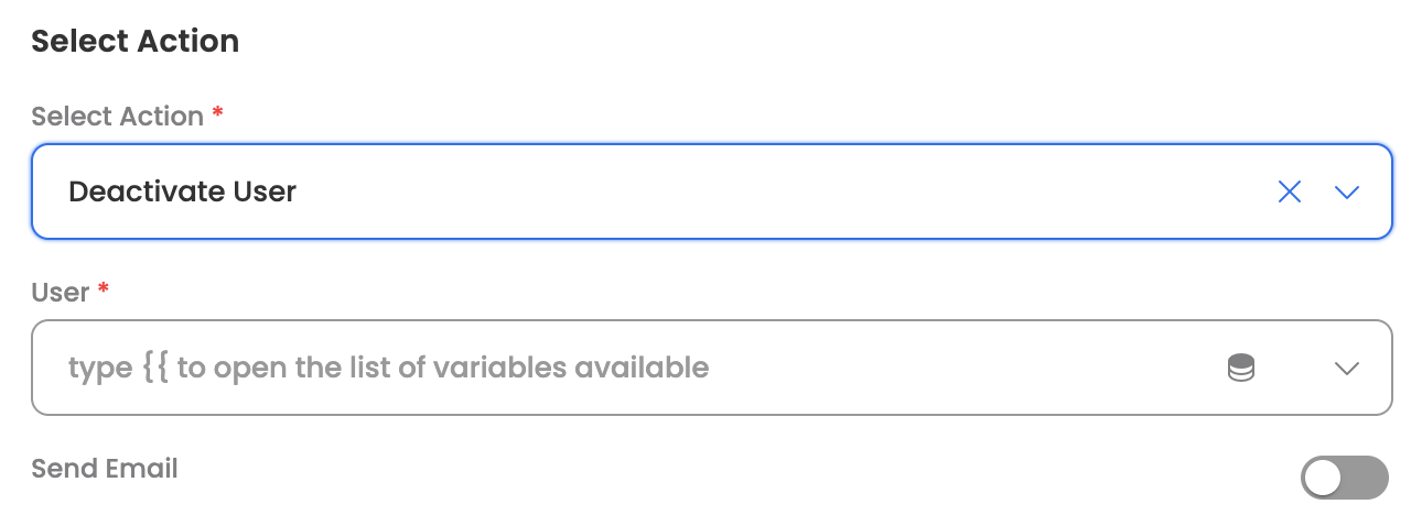 | Send email | Send deactivation email to user | true/false |