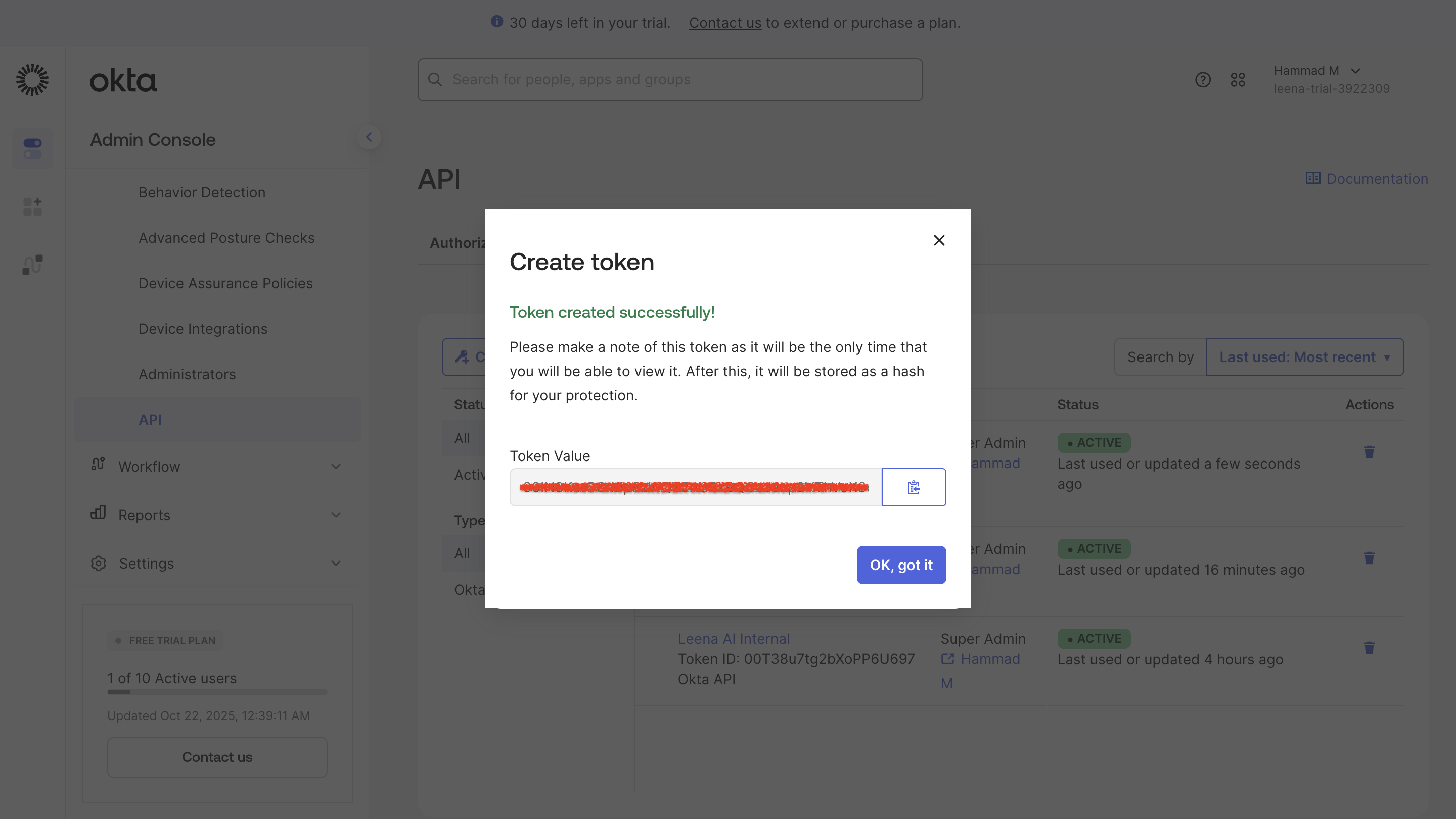 - Ability to create API tokens in Okta