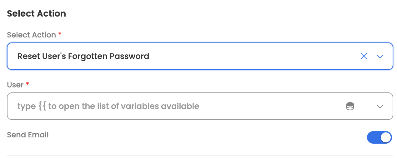 | Send Email | Send email to user once password is reset | True |
