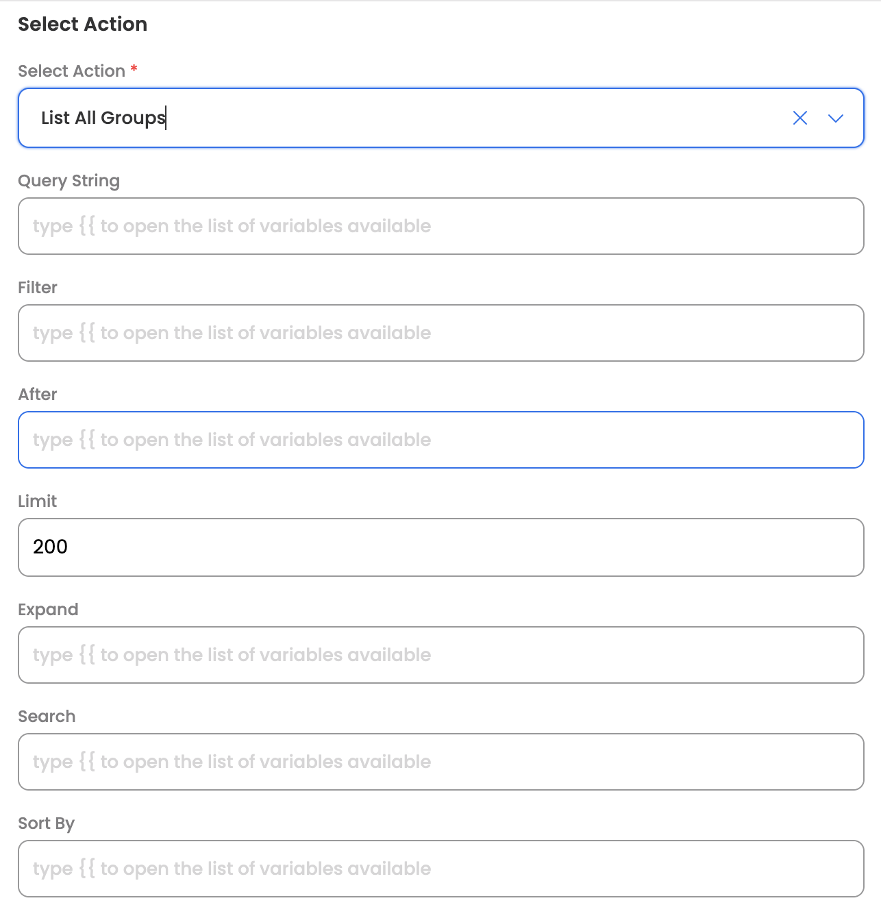 | filter | Filter expression | type eq "OKTA_GROUP" |