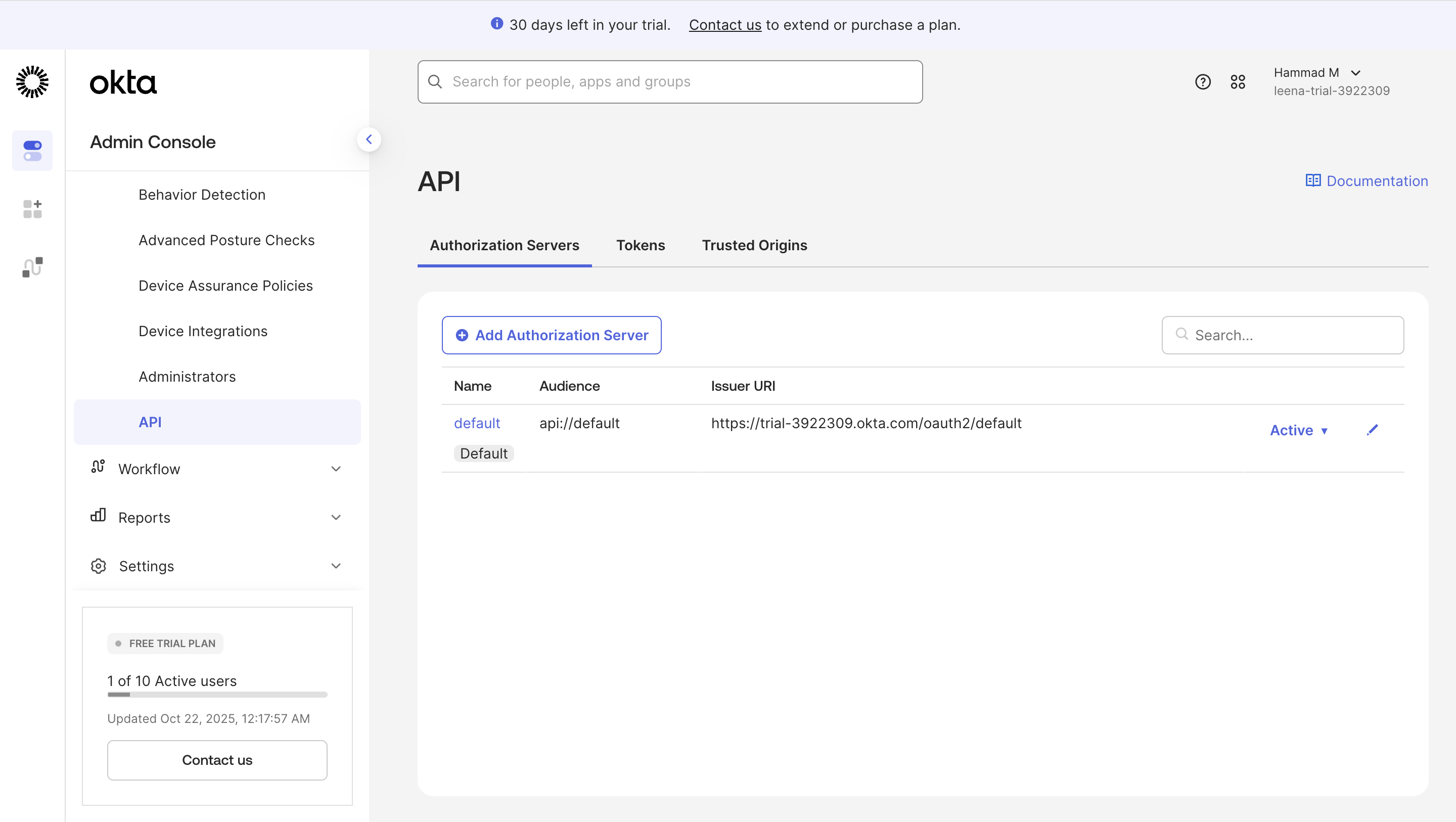 | Base URL | Your Okta organization URL (must start with 'https://') | https://trial-392230-admin.okta.com/ |