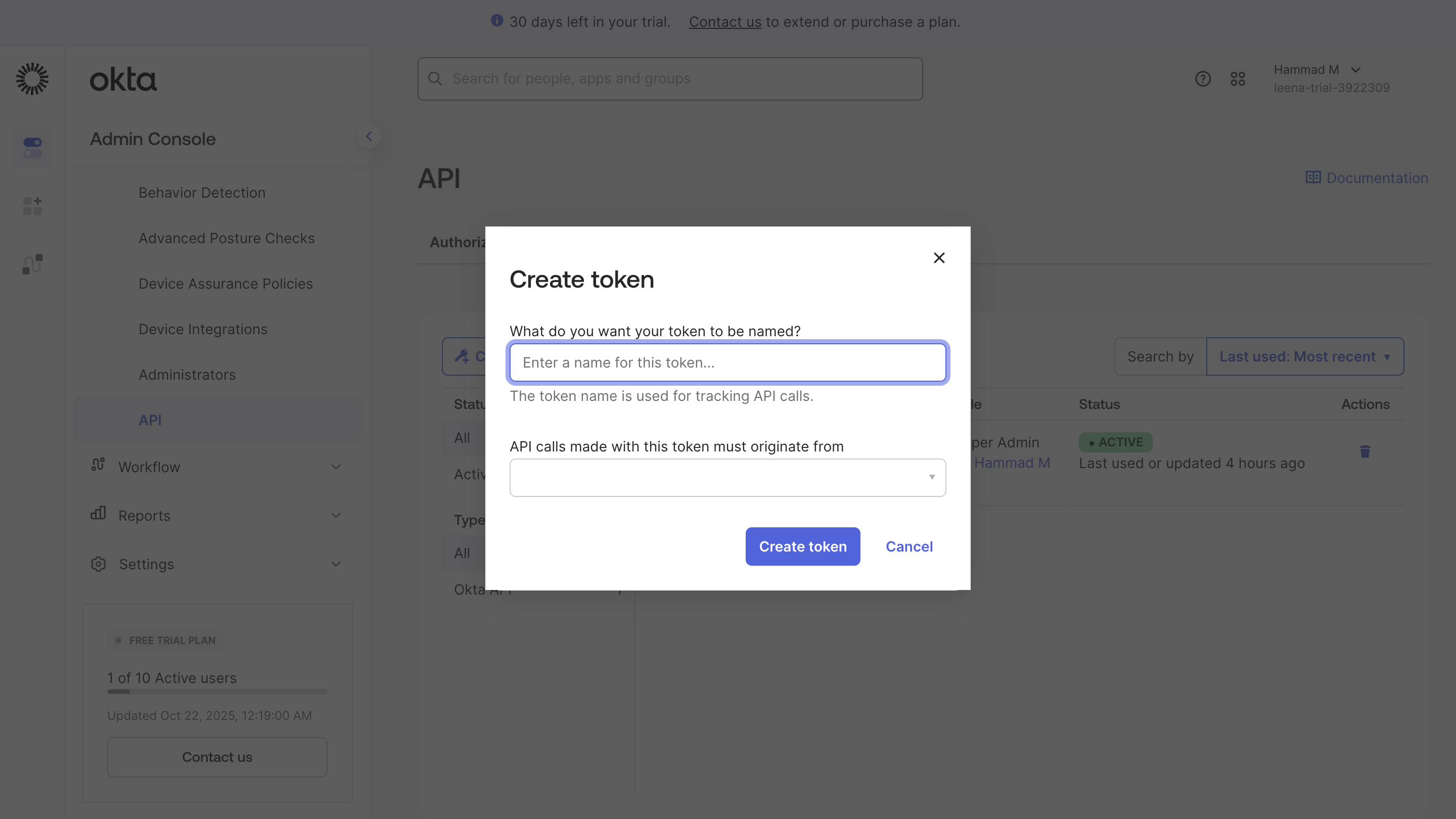 Step 1: Create API Token in Okta