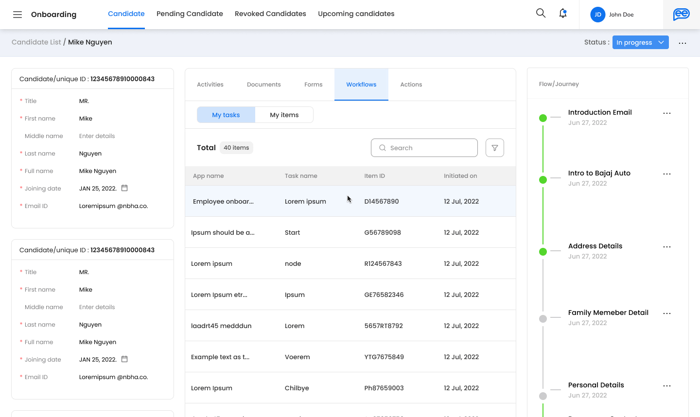 In order to handle the sub-flows within the on-boarding module, we have now done integration with our workflow modules.