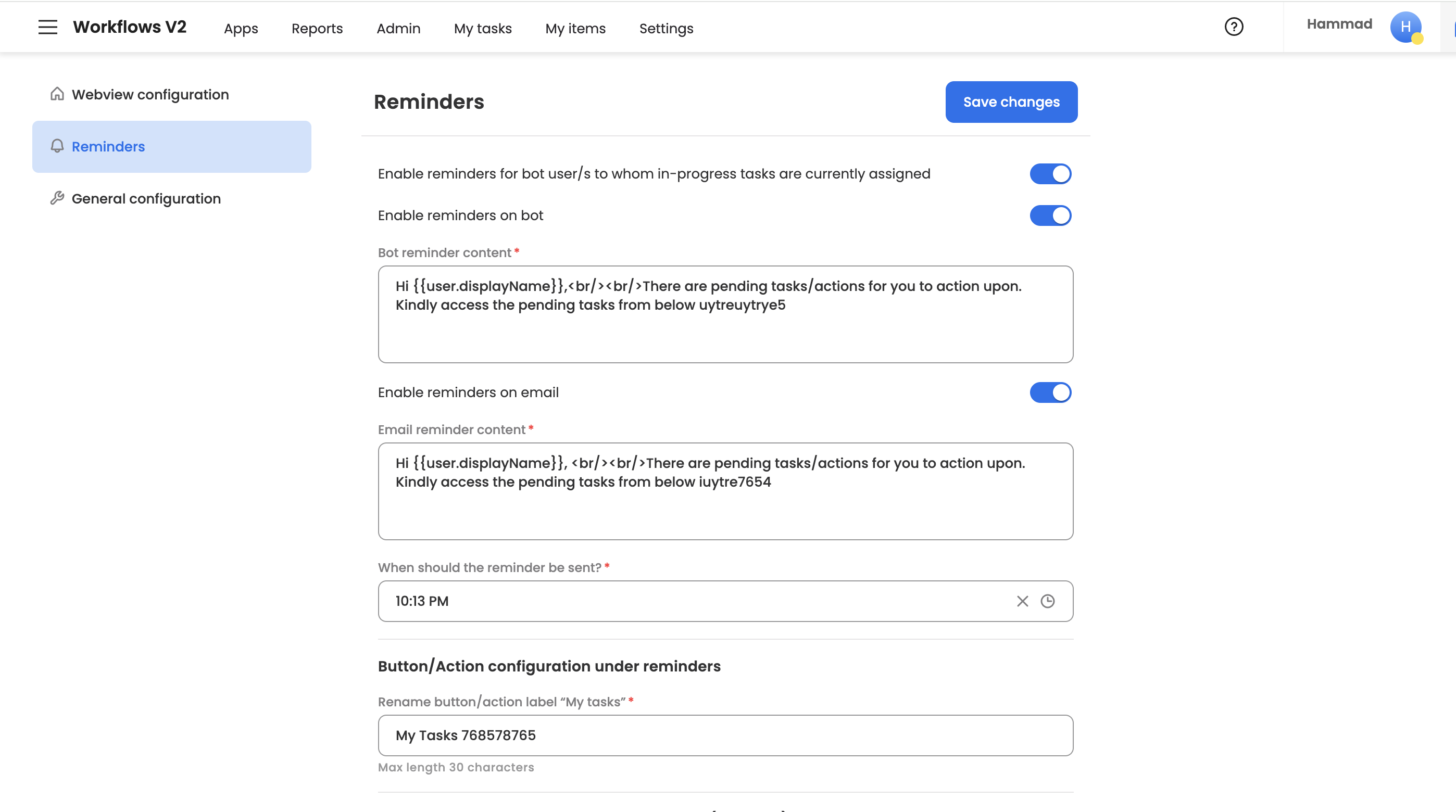 2. The section is only exposed to workflow Admins. It allows admins to configure global settings at a bot level