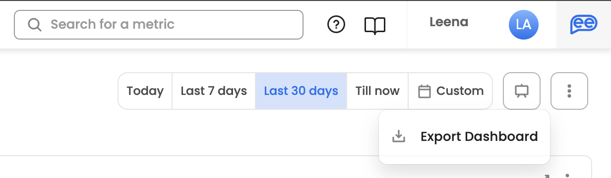 Additionally, the users can utilize the quick date filters to select an appropriate time range for viewing the desired metrics.