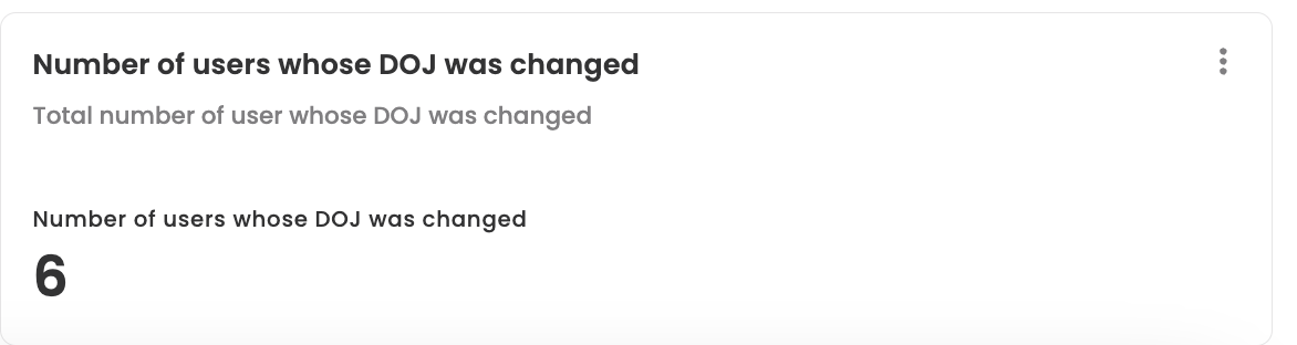 Provides information on the number of users whose Date of Joining (DOJ) or Last Working Day (LWD) was changed within the selected time period. This metric helps users understand if their onboarding/offboarding journey has significant delays.
