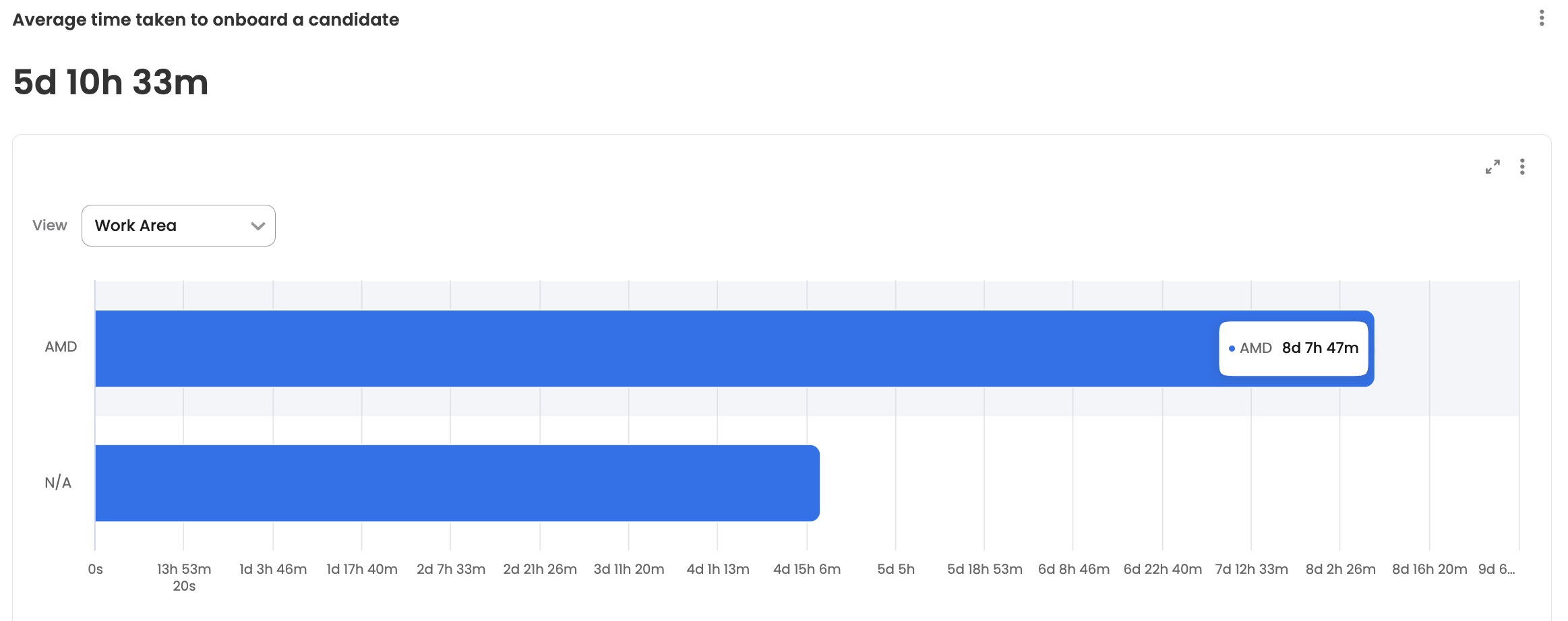 Time taken to onboard a candidate is calculated as "Timestamp of when the candidate's status was marked as 'Onboared'" - "Timestamp of when the candidate was added onto the Leena AI's onboarding dashboard, either via manual addition or API integration". Additionally, users can group the metrics on any of the section keys defined in the onboarding dashboard via the dropdown provided.