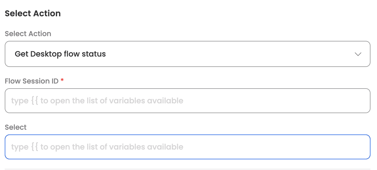 | Get desktop flow status | This action fetches the status of a desktop flow. |