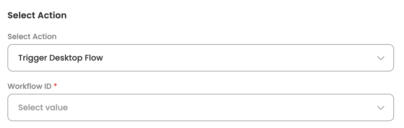 | Trigger desktop flow | This action allows triggering a specific desktop flow. |