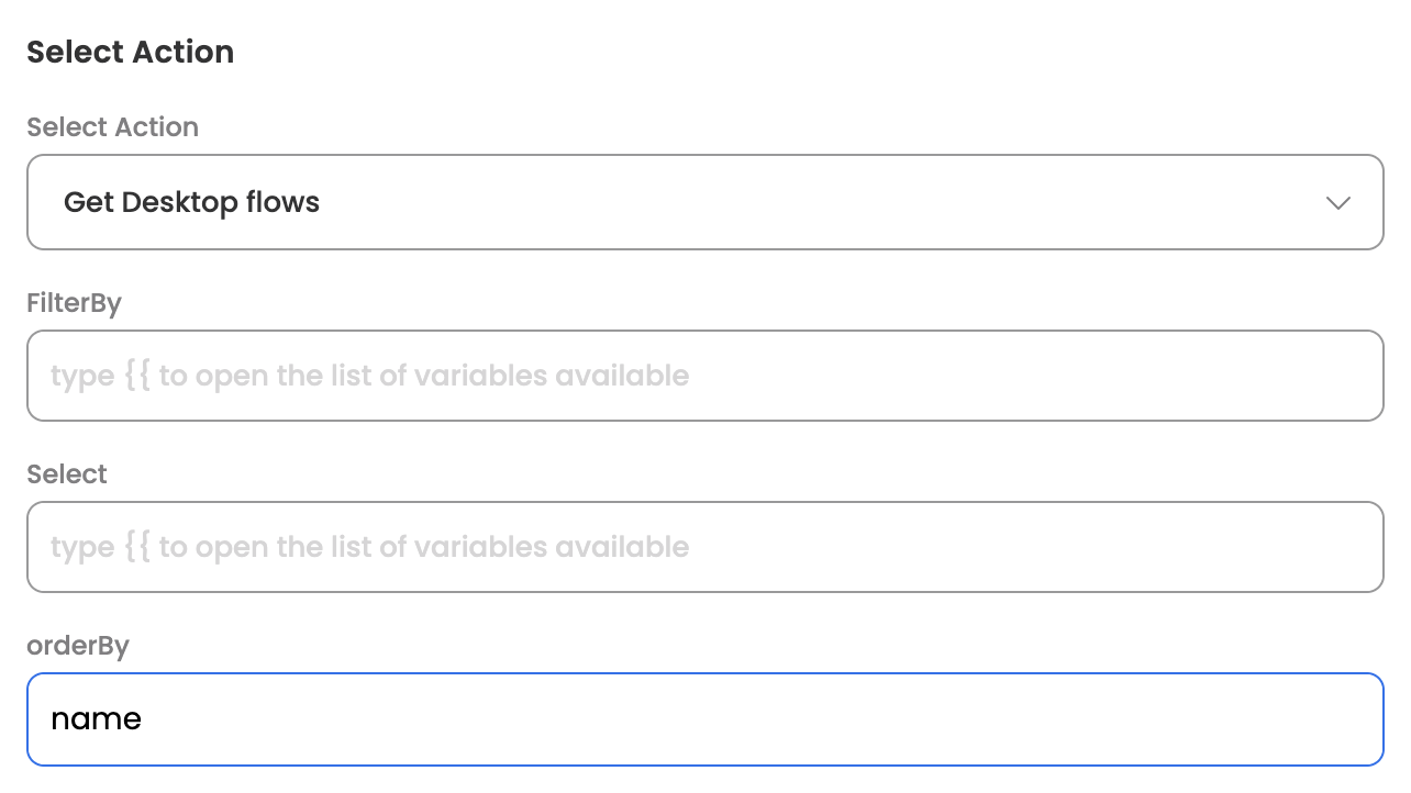This action allows fetching desktop flows created under Power Automate console. User can pass a specific category to fetch specific flows.