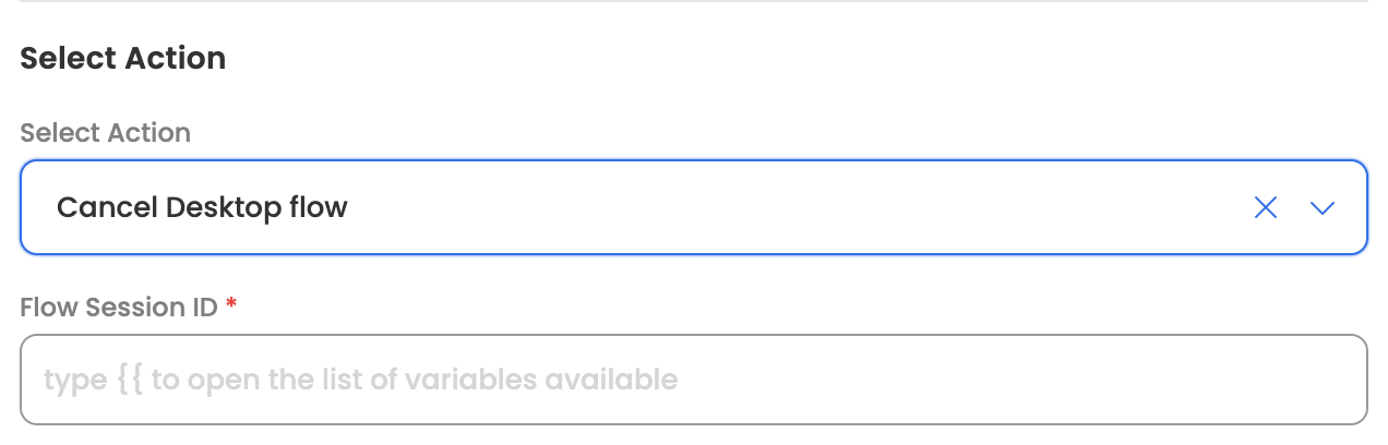 | Cancel desktop flow | This action allows cancelling a triggered desktop flow. |