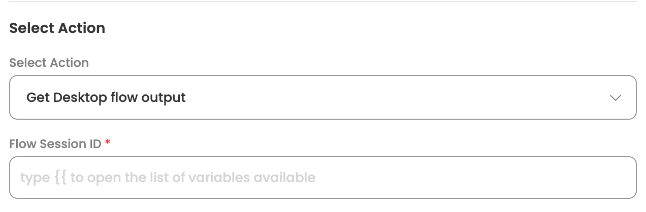 | Get desktop flow output | This action allows fetching the output of a triggered desktop flow. |