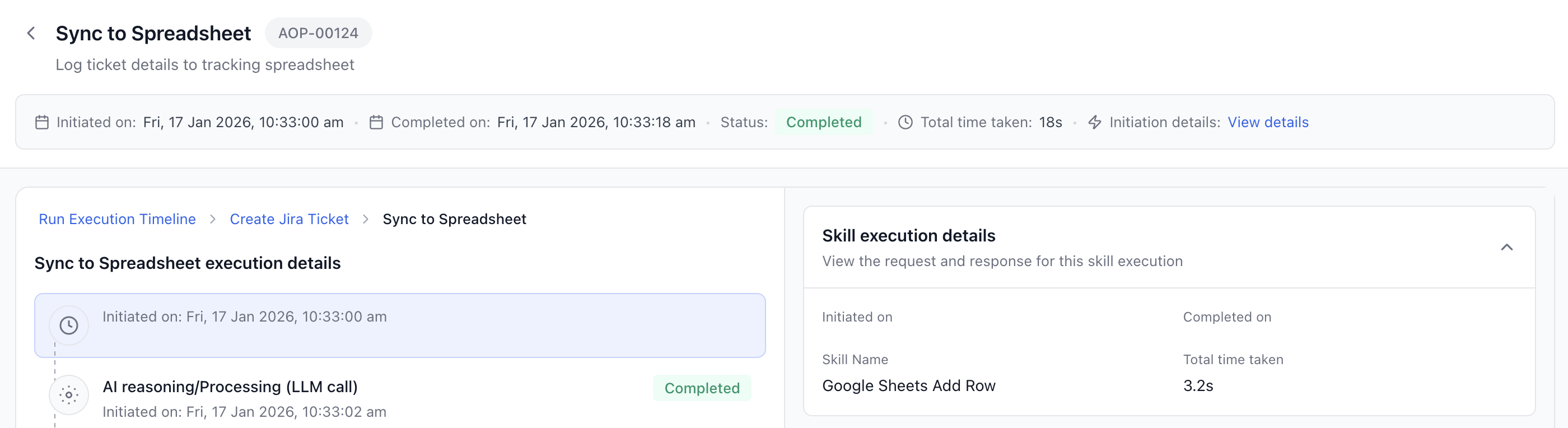 Run Execution Timeline > Create Jira Ticket > Sync to Spreadsheet