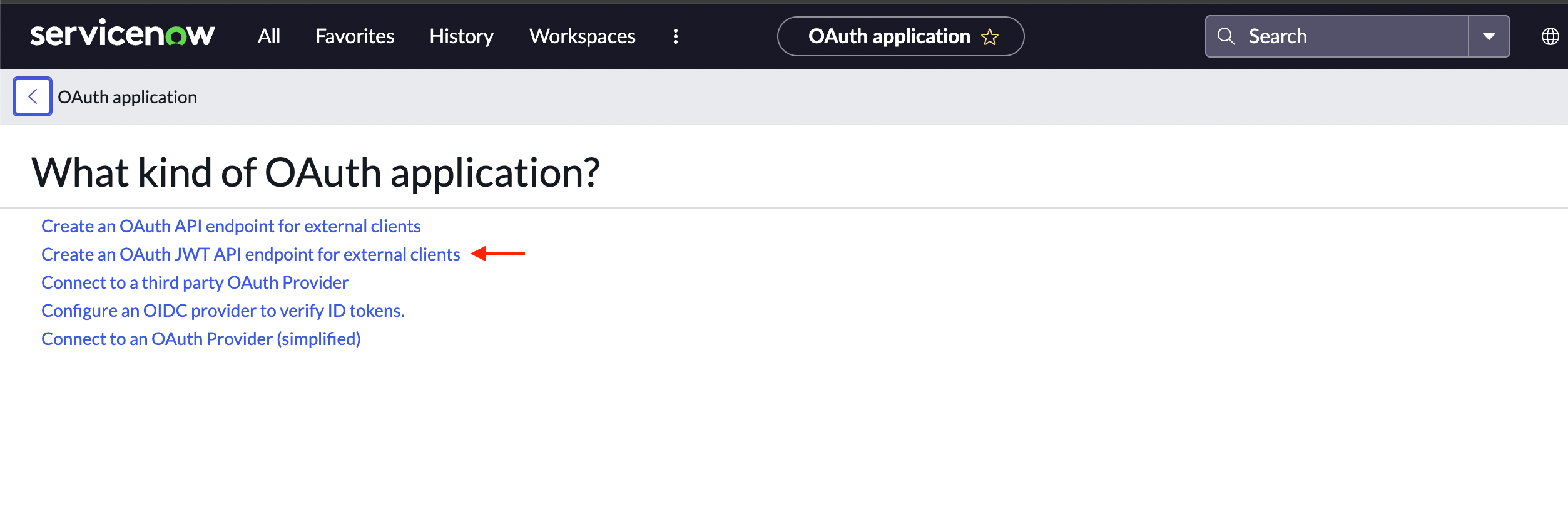 Click on “New” application registration and select the following option: “Create an OAuth JWT API endpoint for external clients”.