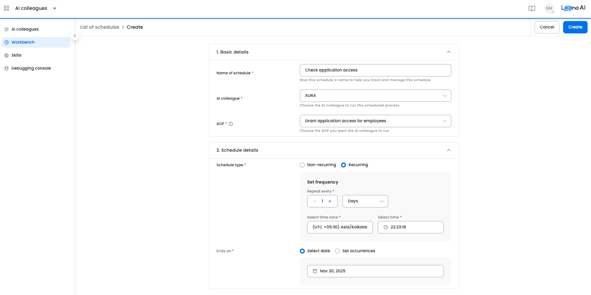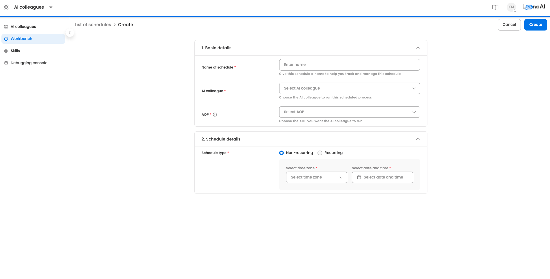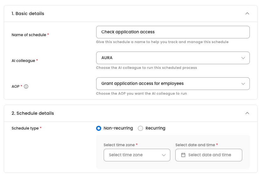 - Choose which AI Colleague will execute this schedule