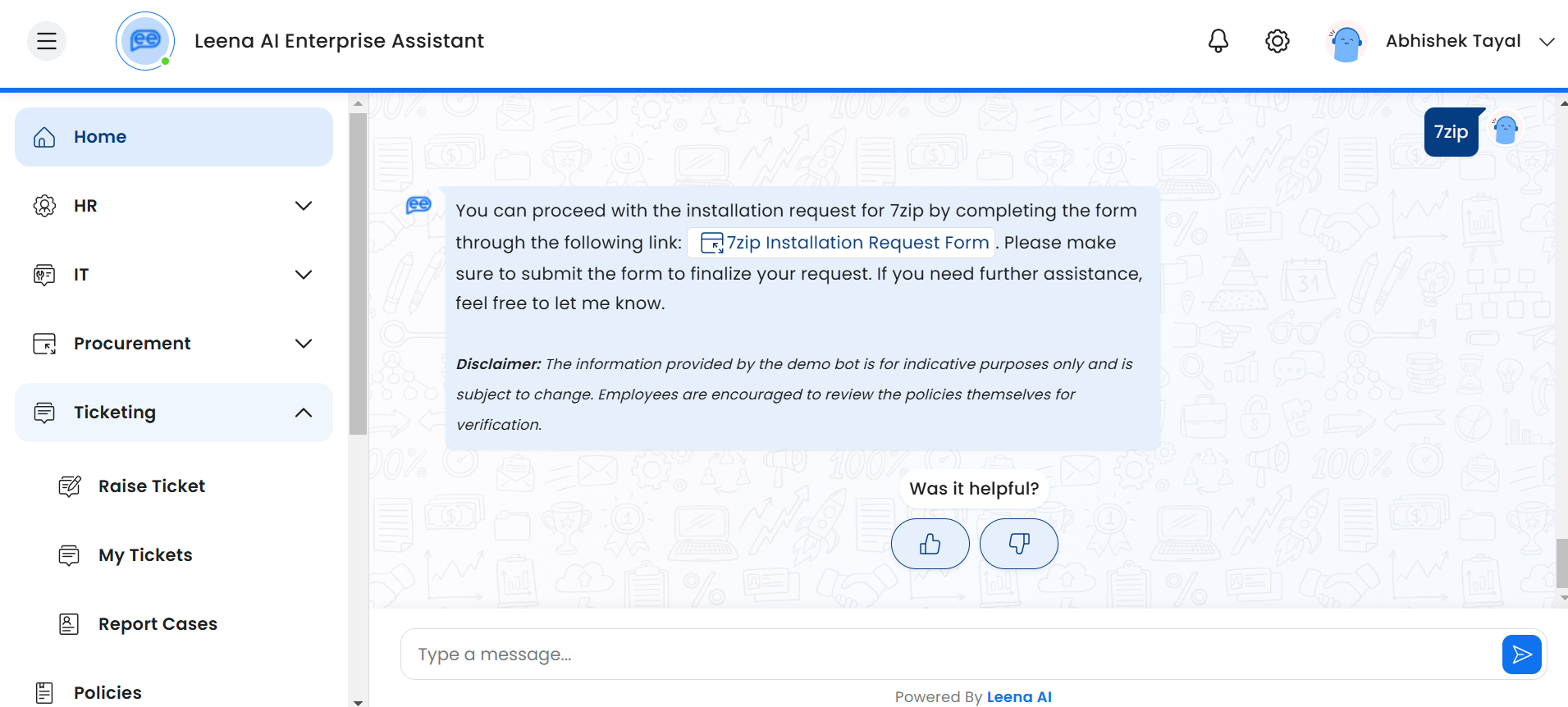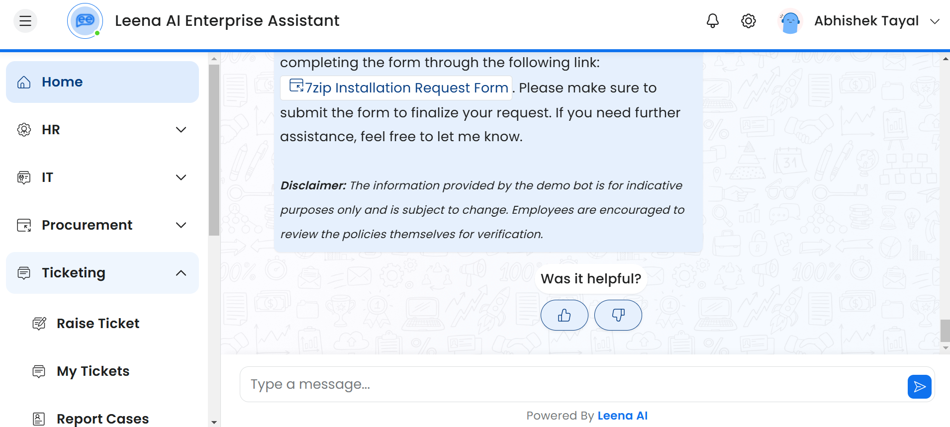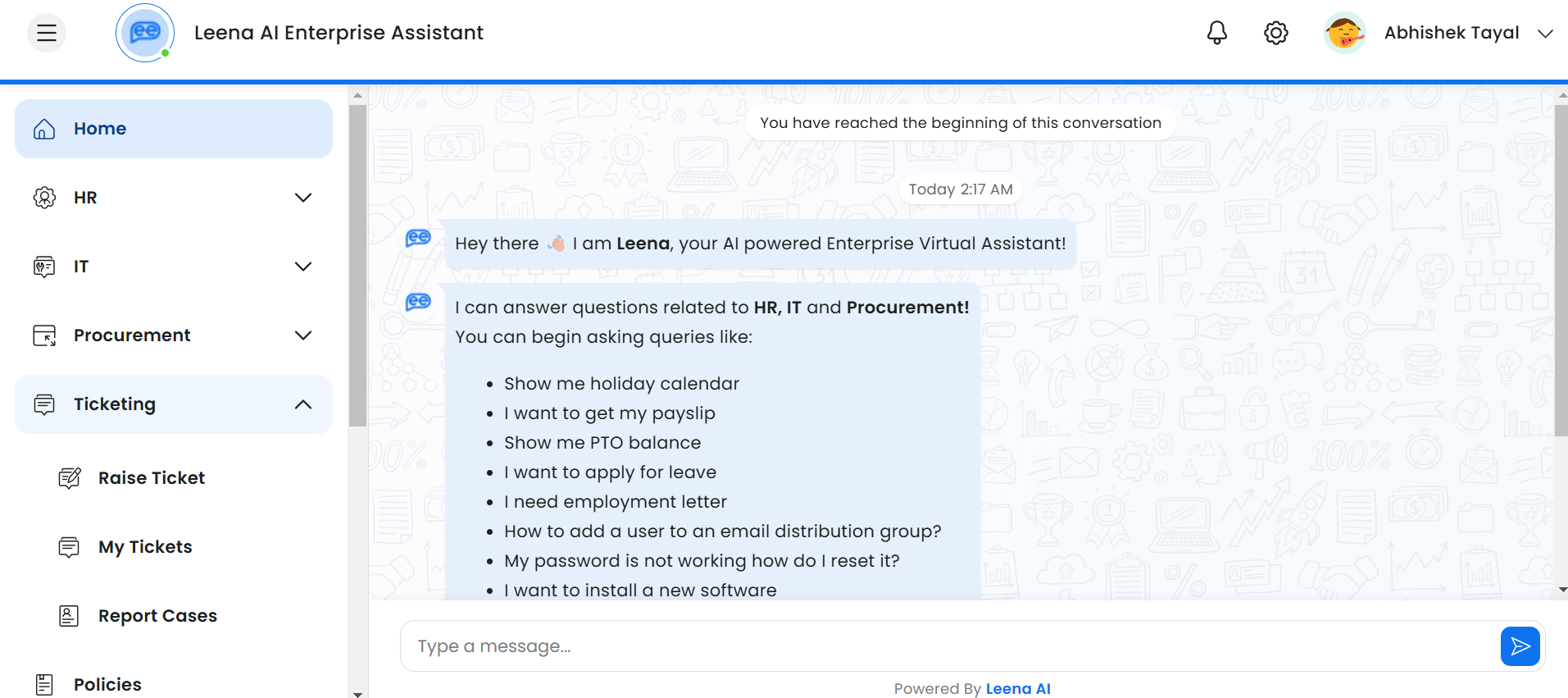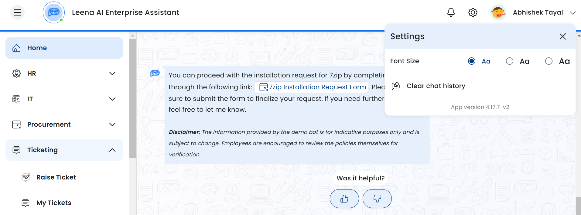 Change font size - Use the settings gear to change the font size of the text on the virtual assistant. This is a key accessbility tool available on the Leena AI virtual assistant.