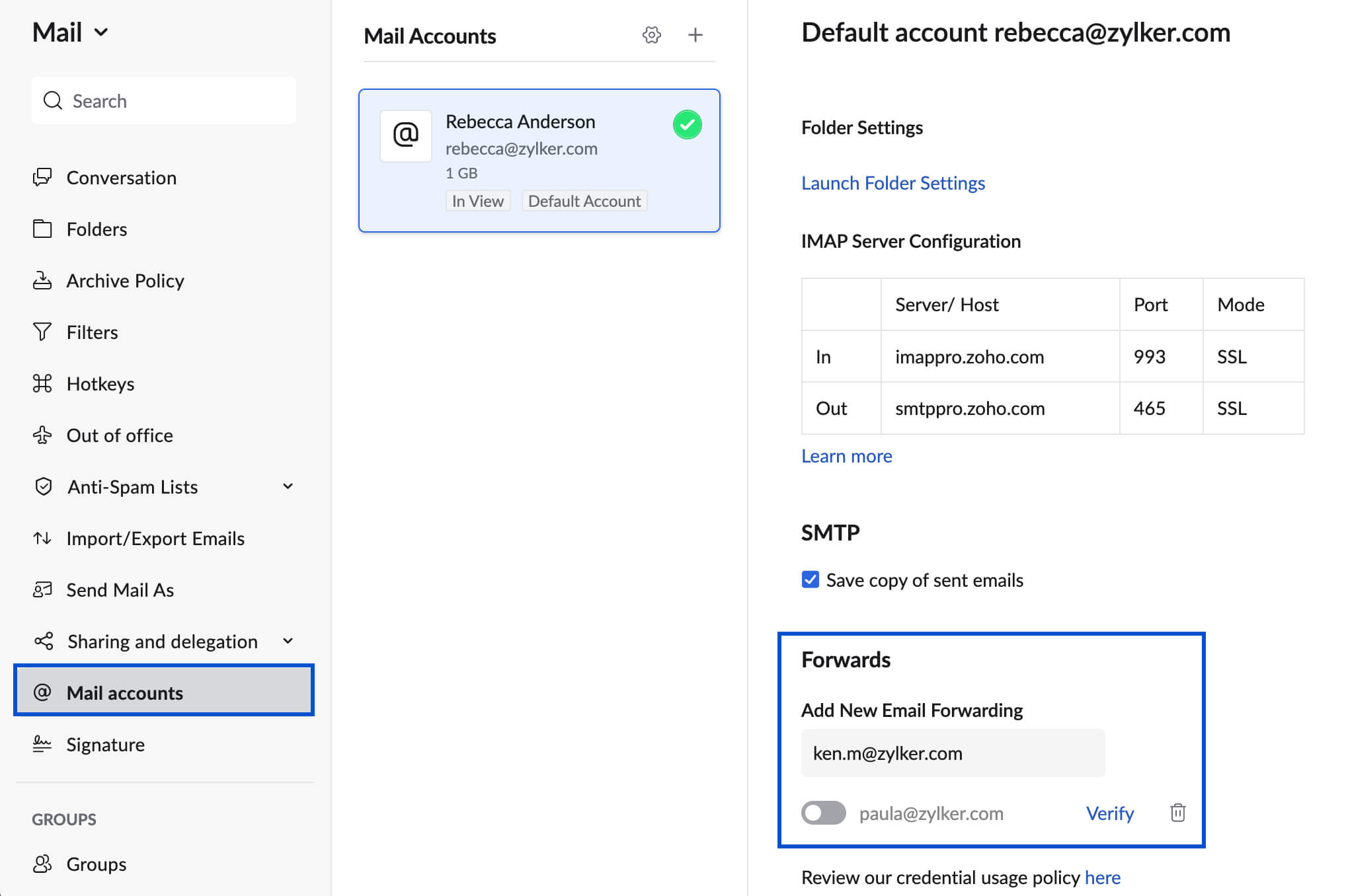 - Go to Mail Accounts. You will find a list of accounts you have configured under your Zoho Mail account.