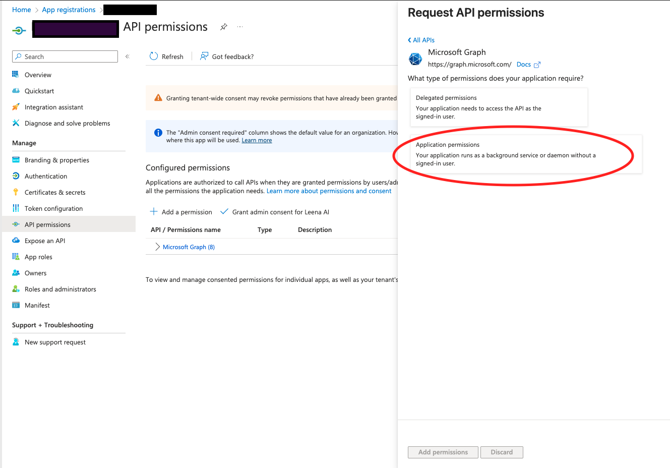 4. Name: Give your application a clear name (e.g., "Leena AI SharePoint Connector").