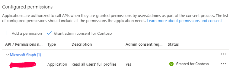 7. Finally, you must grant consent for these permissions. Click the Grant admin consent for [Your Tenant Name] button and accept the prompt. The status for all permissions should update to show a green checkmark.