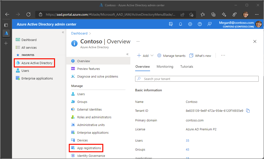 2. In the left menu, go to Azure Active Directory > App registrations.