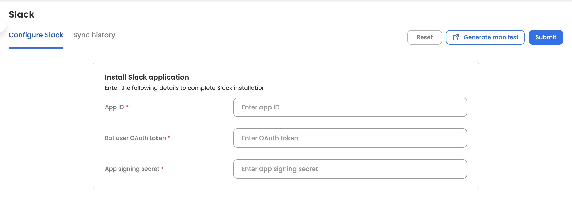 Return to the unified dashboard. All three fields (App ID, Signing Secret, and OAuth Token) should now be filled.