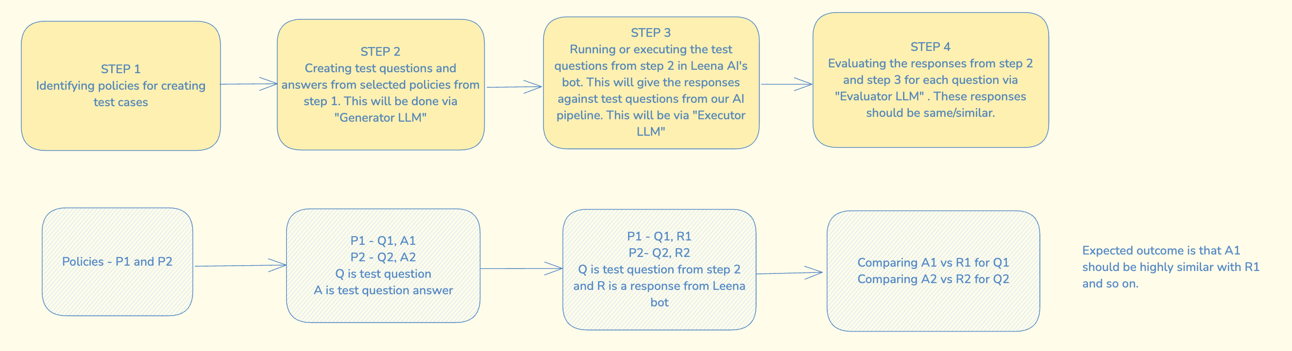 - These policies will be used to create test cases, ensuring the chatbot's responses align with predefined knowledge.