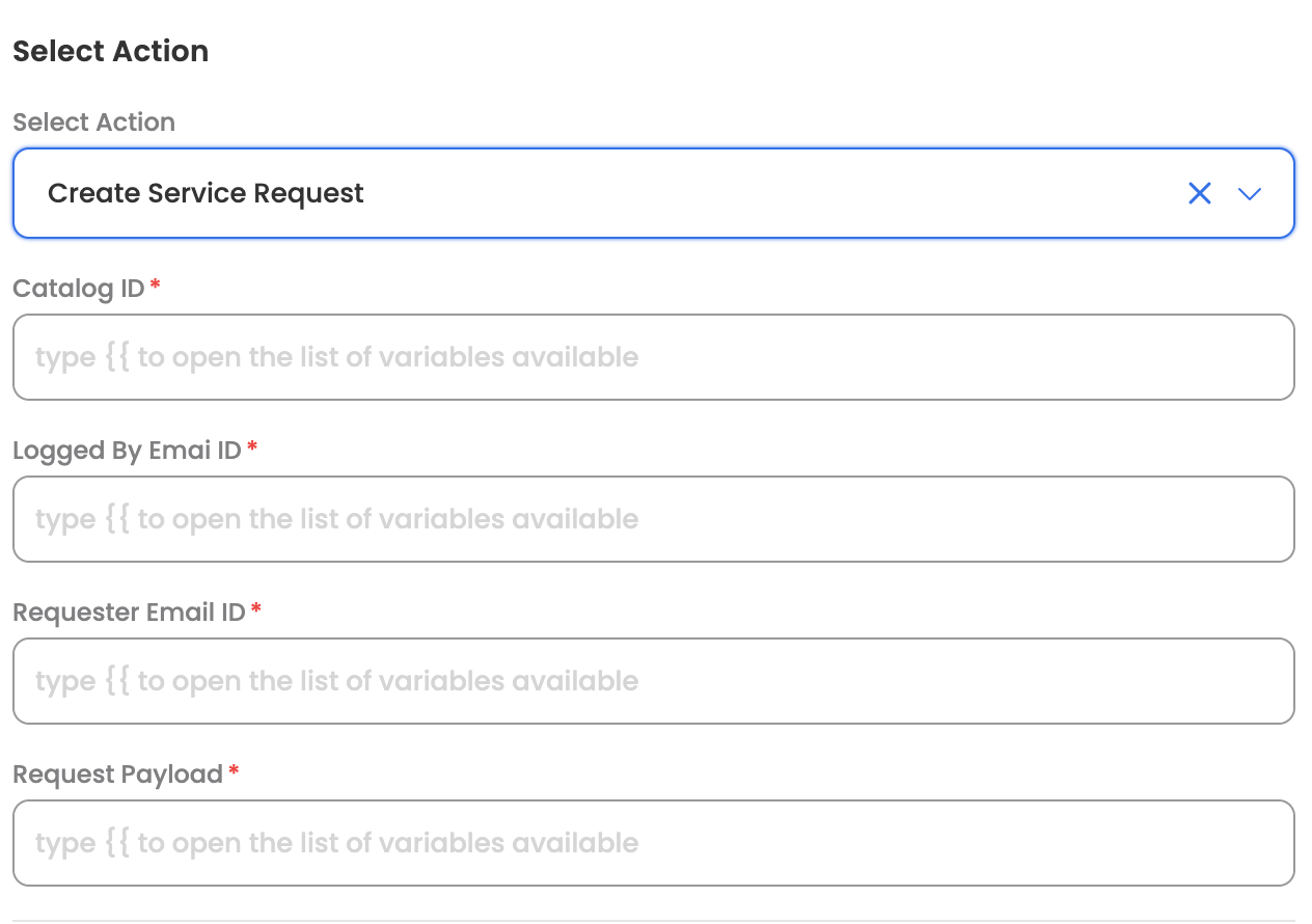 | Catalog ID | The ID of the specific catalog for which the required fields are to be fetched in order to raise service request |