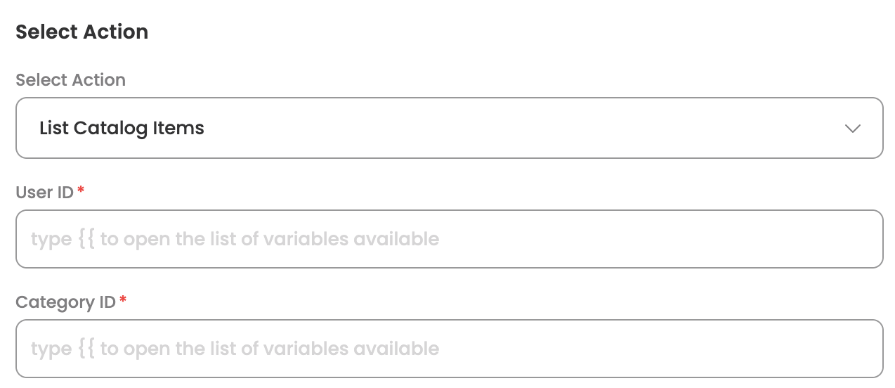 | Category ID | The ID of the specific category within which all the catalog items are to be fetched |