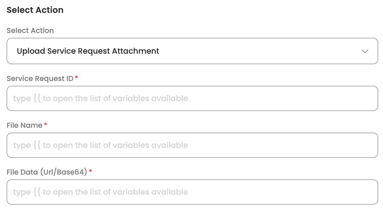 Adds an attachment to a raised service request. The Agent can leverage the skill (workflow), which has been designed to upload supporting documents or files to an existing service request in Summit AI.