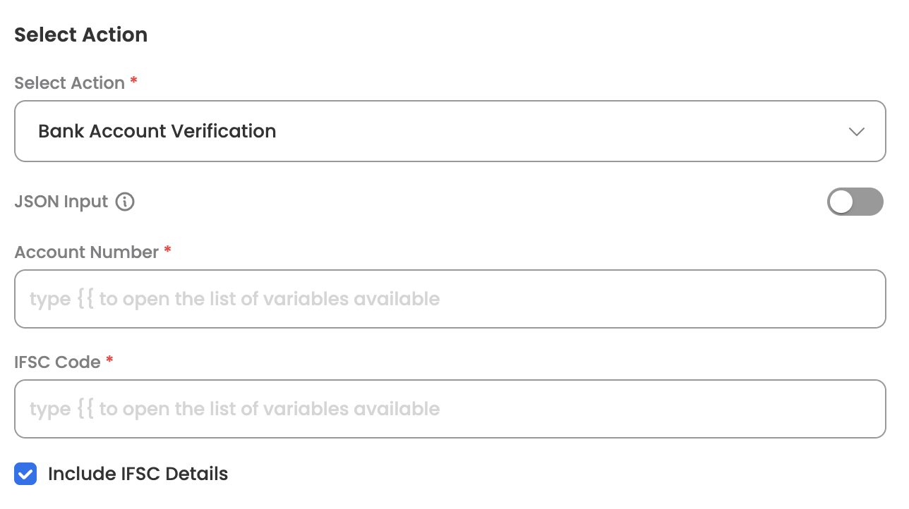 | Include IFSC details | Include detailed IFSC information in the response (Boolean, default: False) |