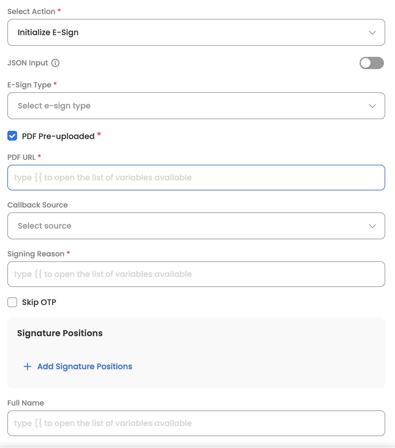 | Mobile Number | Pre-fill signer's mobile number as part of signature |
