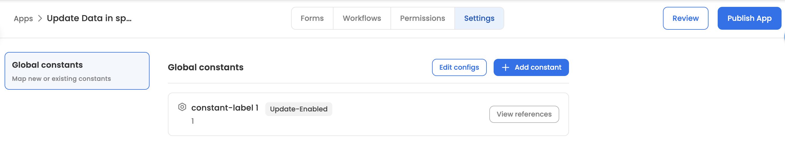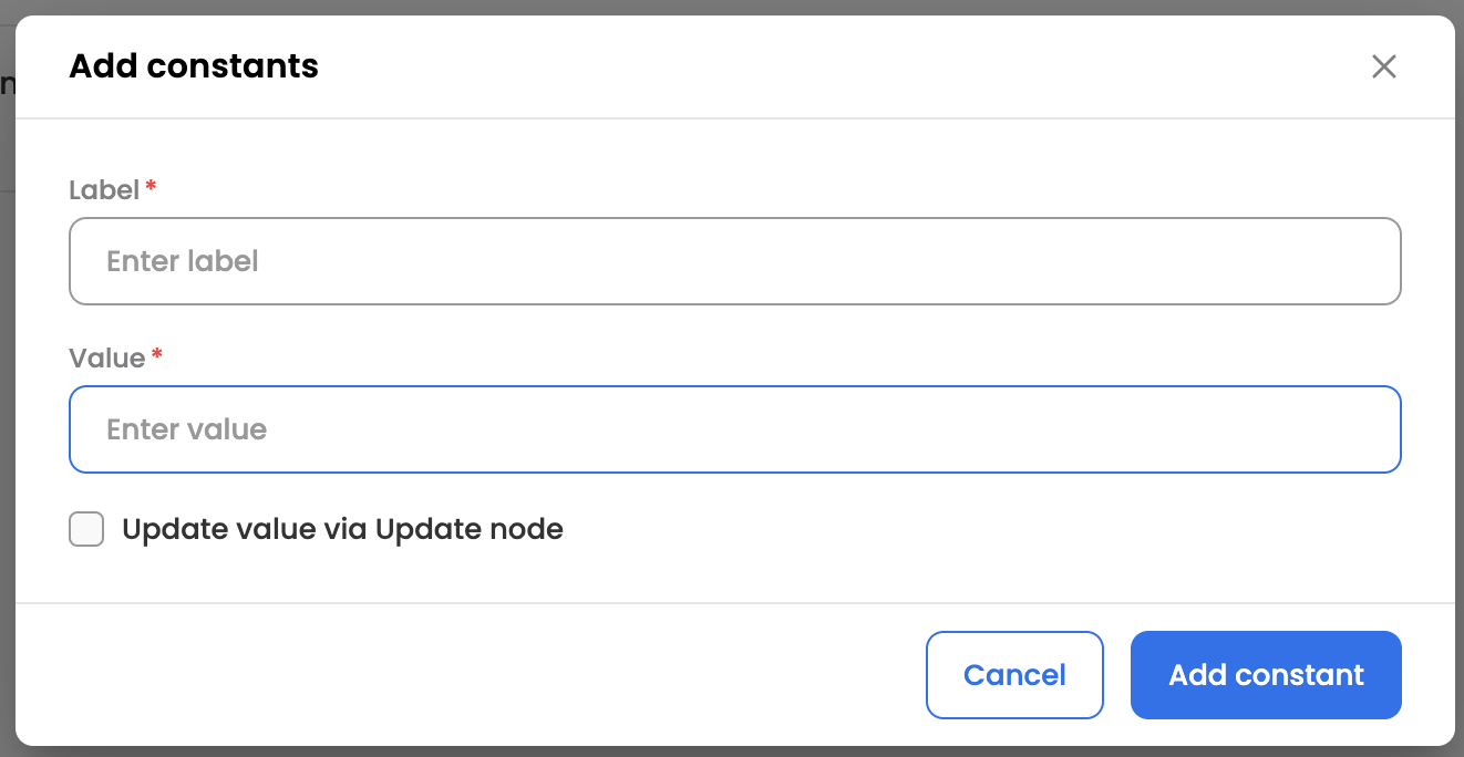 Once enabled, the constant label would start to reflect under the dropdown of Update Data node.