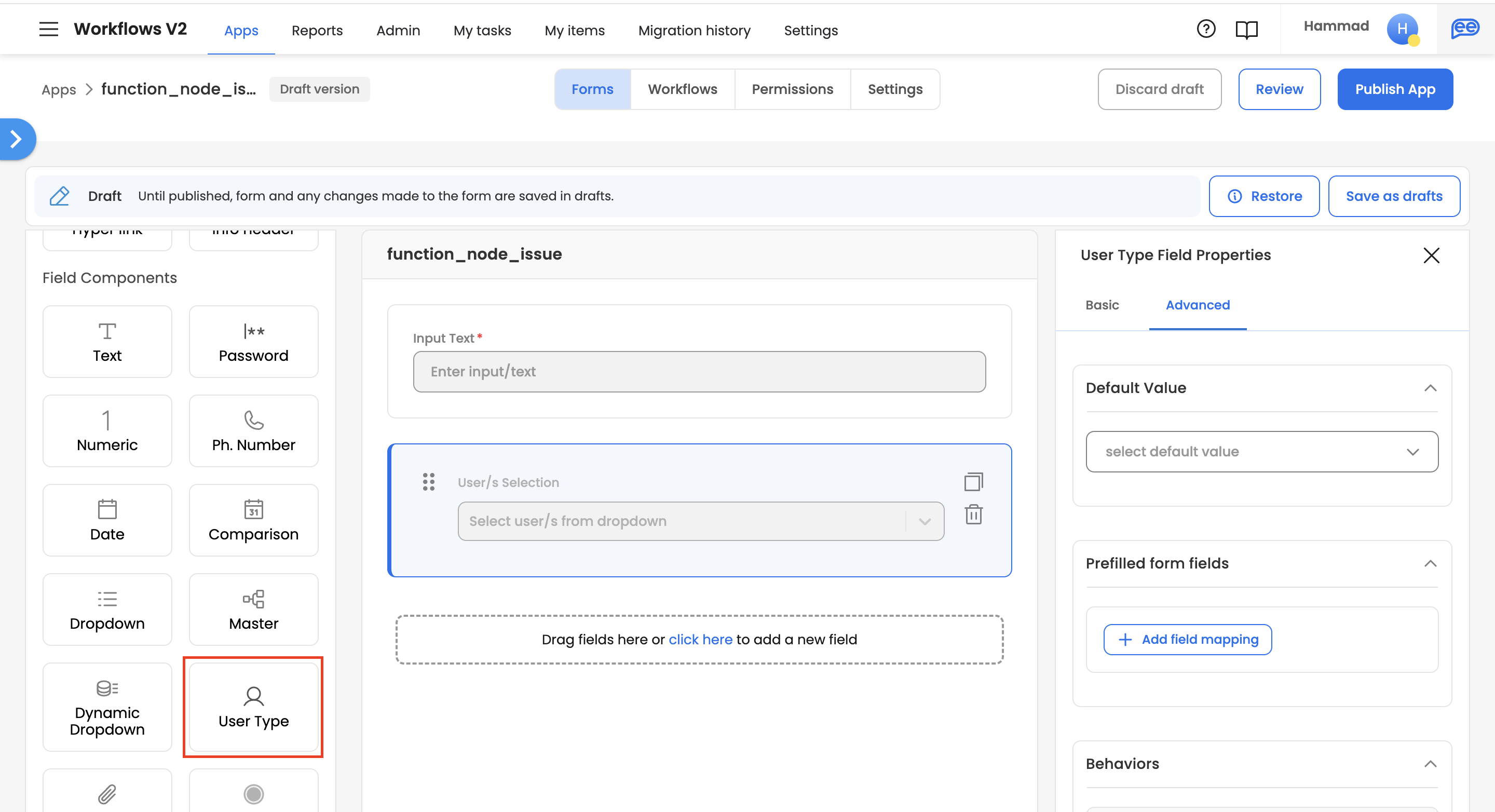 Default value | You can select a default user from the employee/user list, which should reflect on the form as a default value. | |