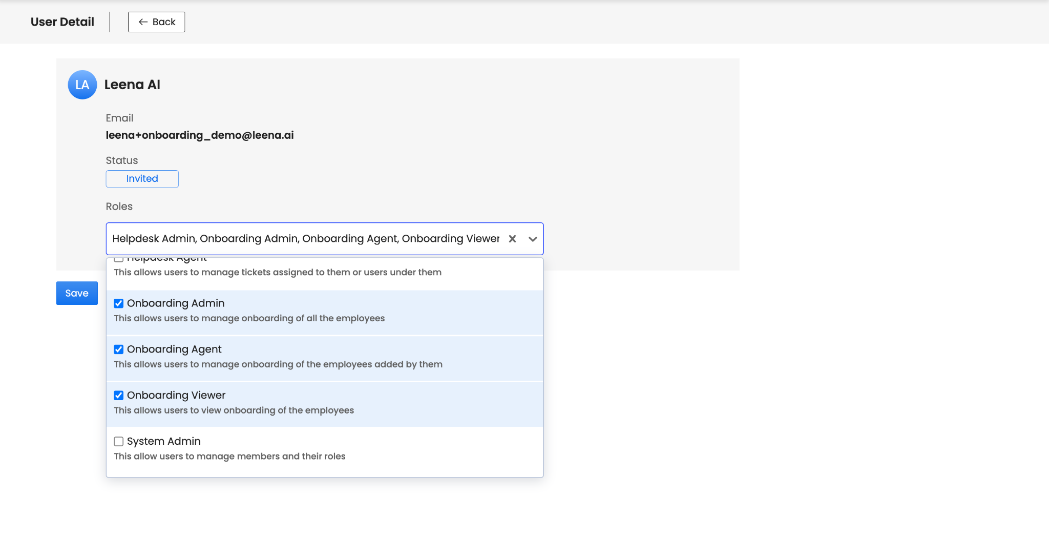 These can be selected from a drop-down where user details can be configured. One or multiple roles can be selected as required.