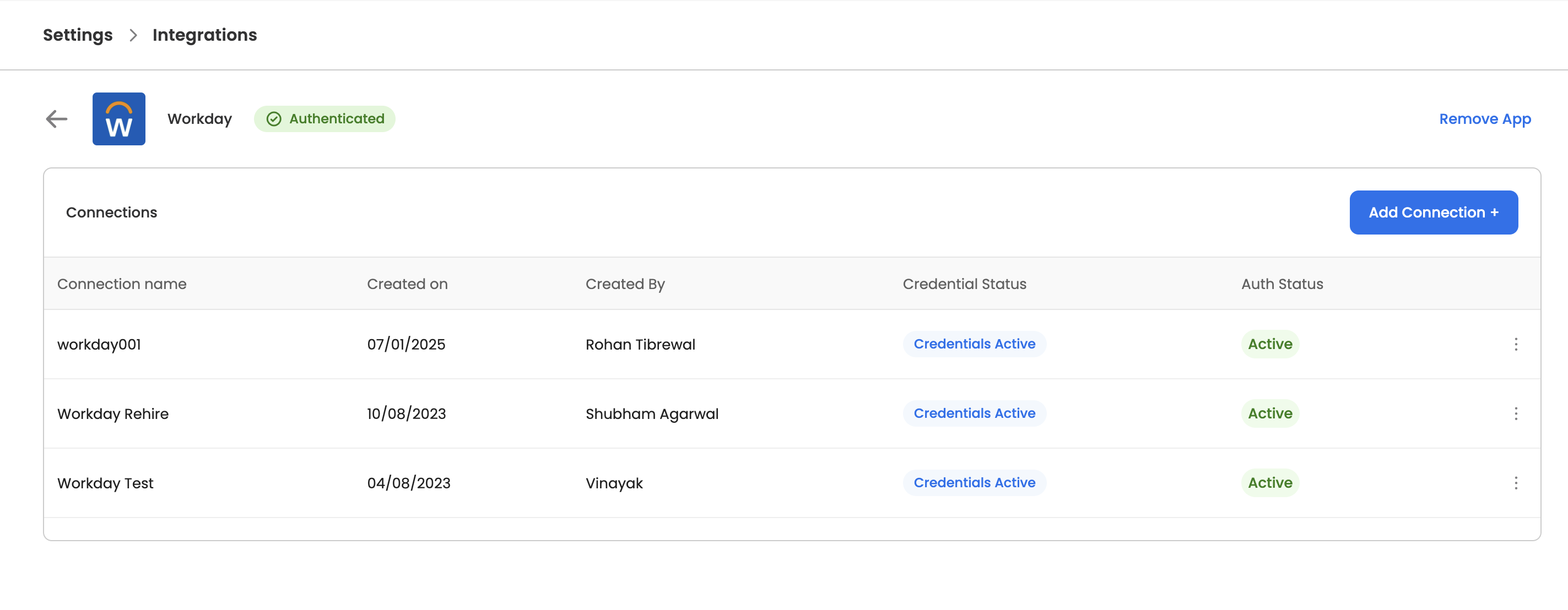 The Workday connector enables seamless integration between Leena AI and Workday's cloud-based Human Capital Management suite. This connector allows you to automate HR workflows, manage employee data, process time-off requests, and handle business process approvals directly from your Leena AI workspace using Workday REST APIs.