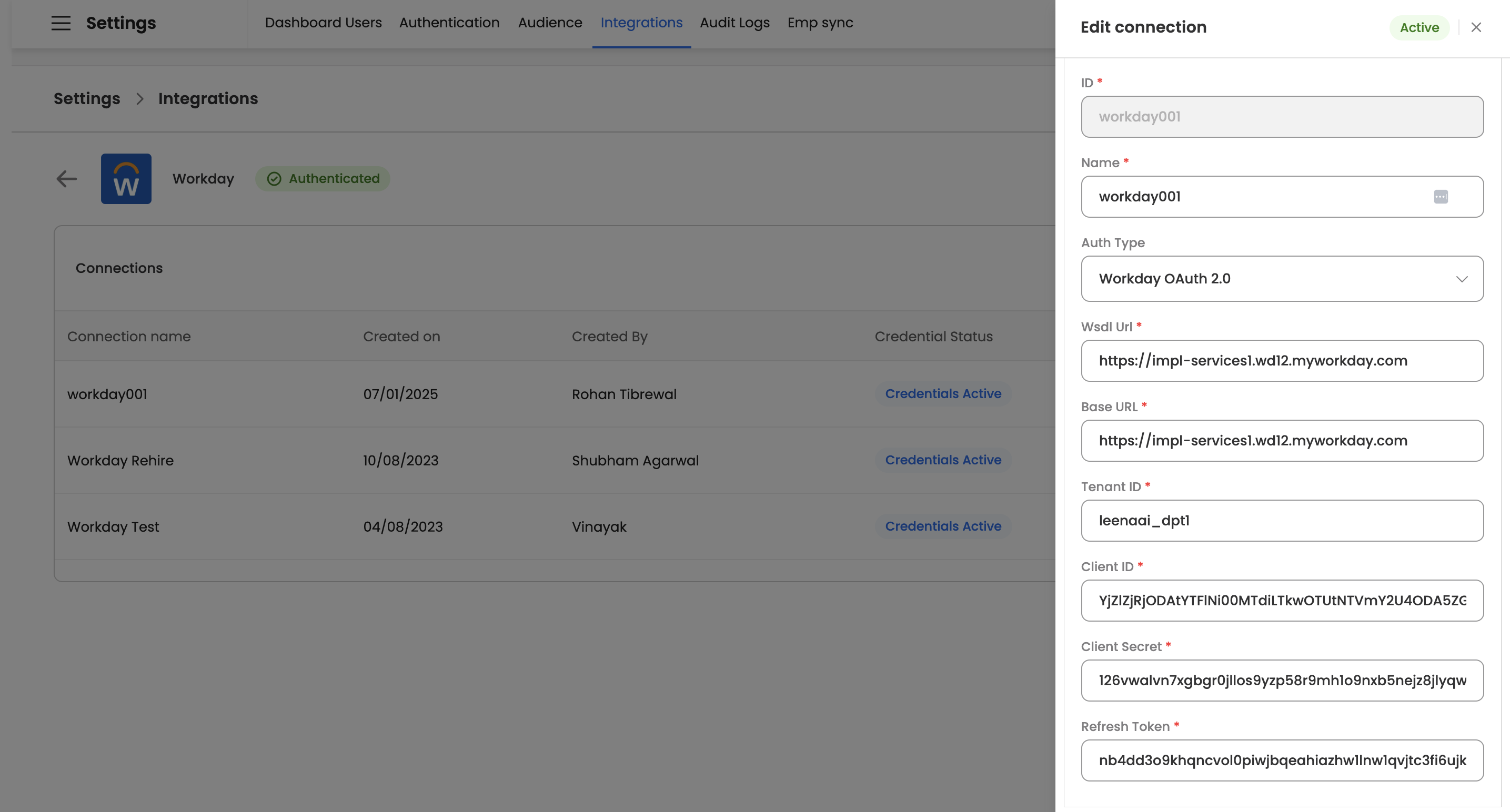 | Tenant ID | Your Workday tenant ID (from Step 9) | leenaai_dpt1 |