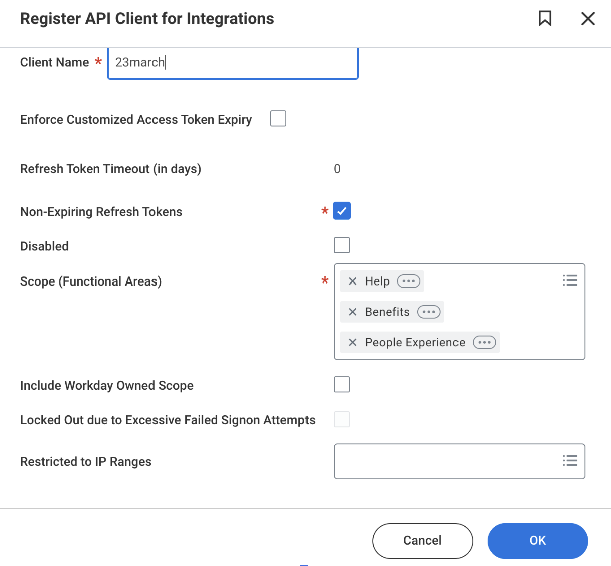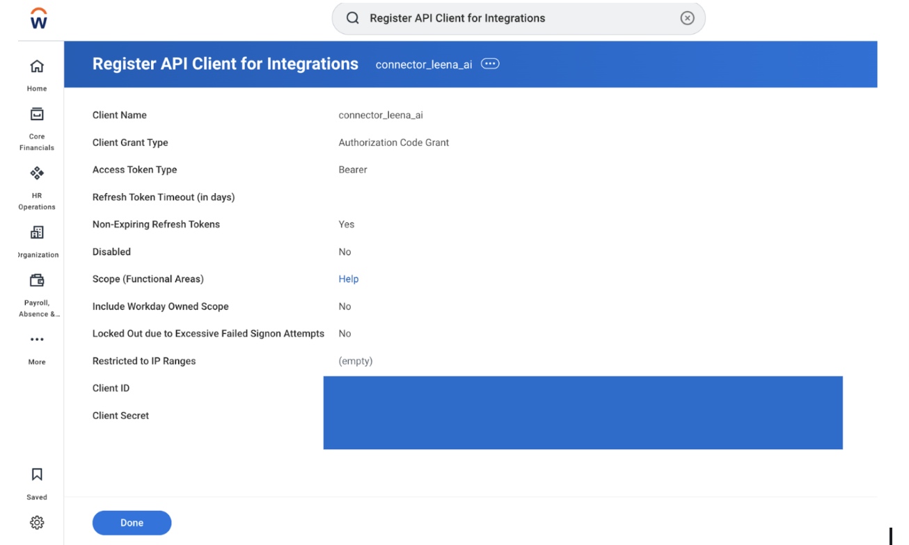 - In the Workday app, search for and select the Register API Client for Integrations task.