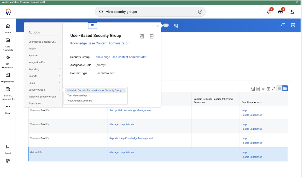 - Select Maintain Domain Permissions for Security Group from the related actions menu.