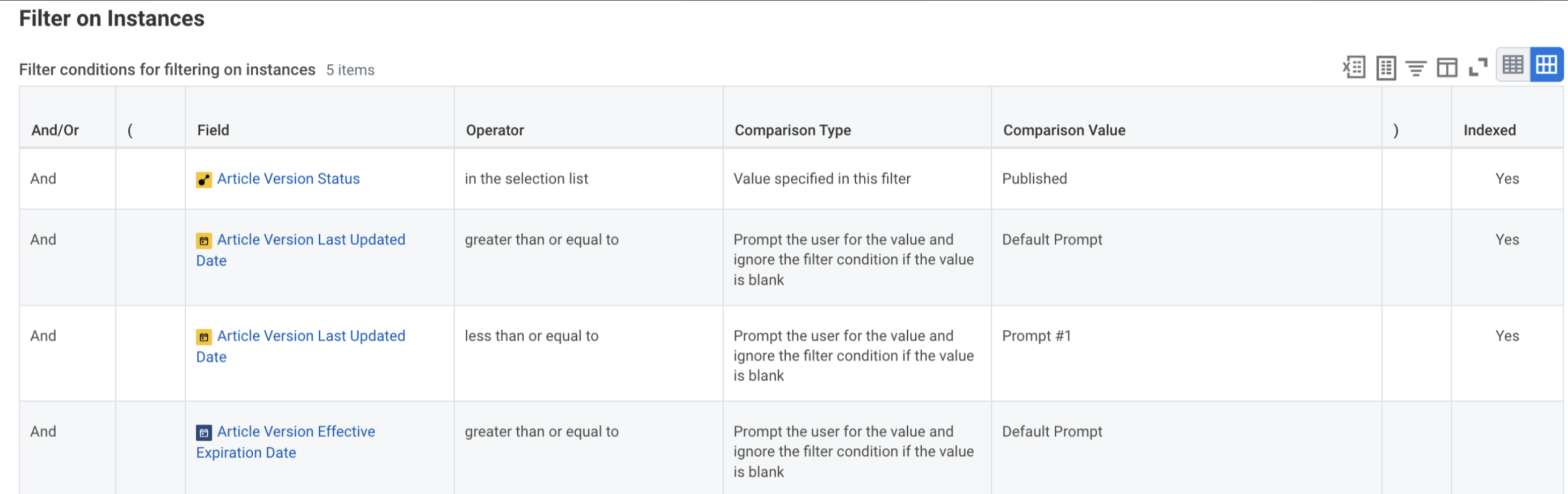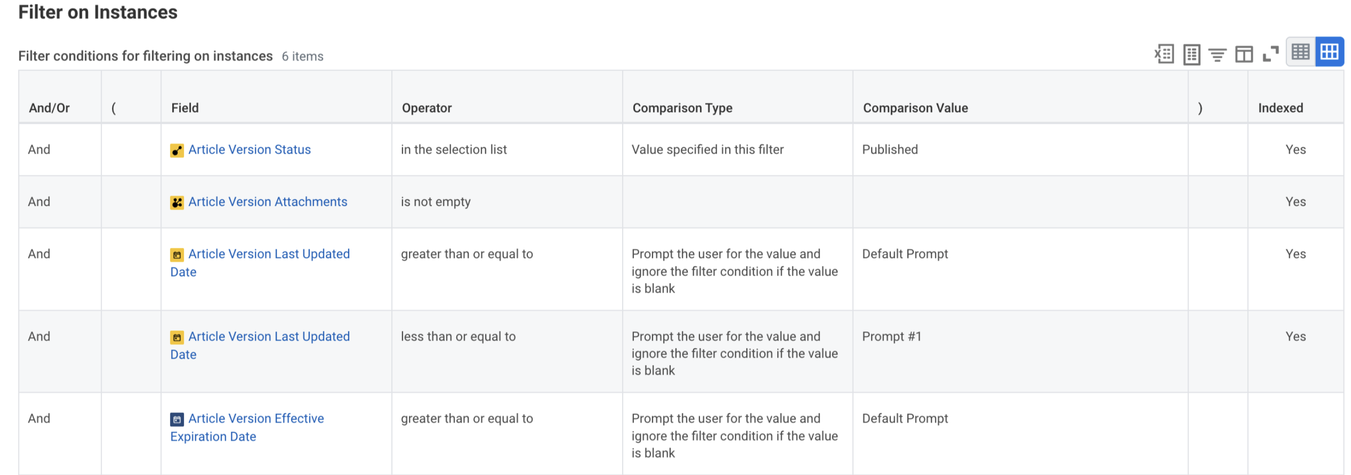 Field Value Report Name All ArticlesReport Type AdvancedData Source Knowledge Base Article Versions🔍 VerificationEnsure the following settings are correctly applied before proceeding to the columns: