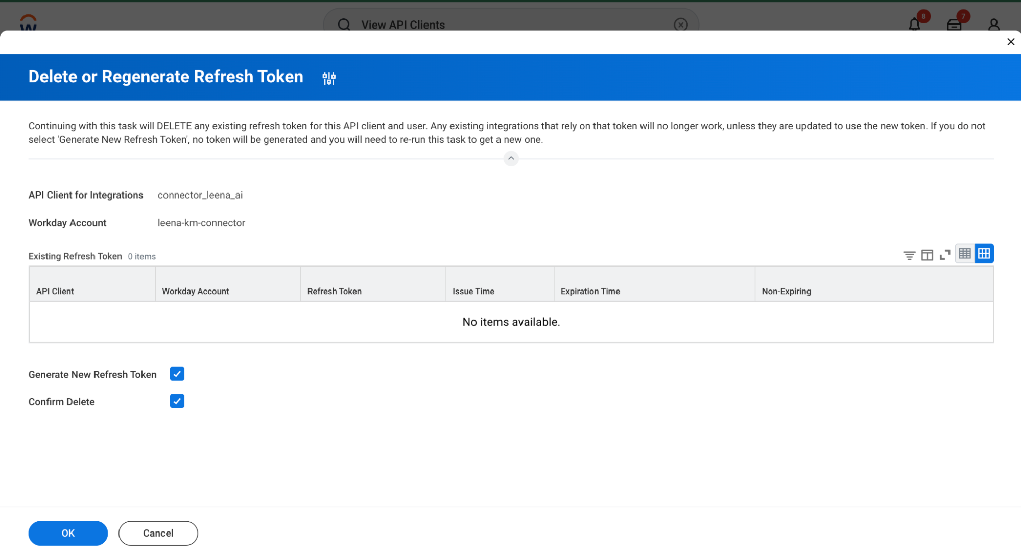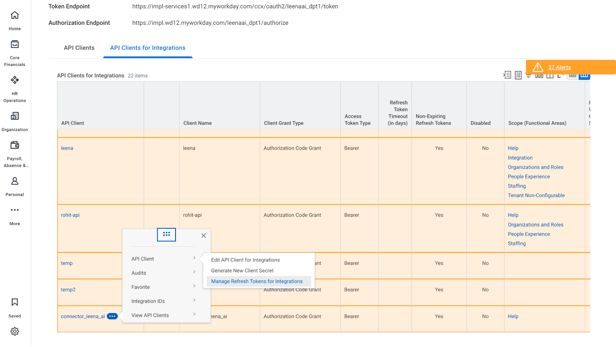 Select your client and choose Manage Refresh Tokens for Integrations.
